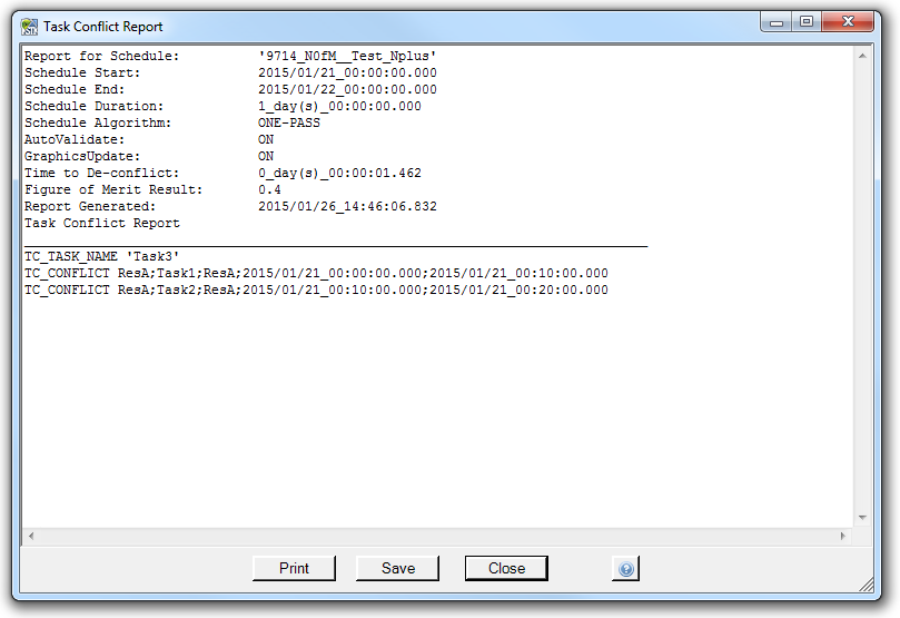 The task conflict report is designed so that it provides information conflicts for one or more tasks in such a manner that it may be programmatically parsed using an external application.