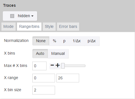 | X range | Manually sets the range for the X bins.