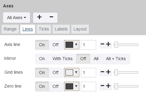 Subtab menu: Range | Lines | Ticks | Labels | Spikes | Layout