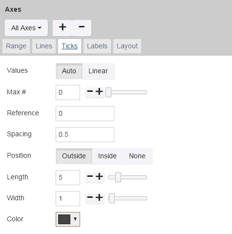 Subtab menu: Range | Lines | Ticks | Labels | Spikes | Layout