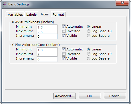 - Minimum - the minimum value to show on the corresponding axis. Only allowed to be specified if the Automatic option isn't selected.