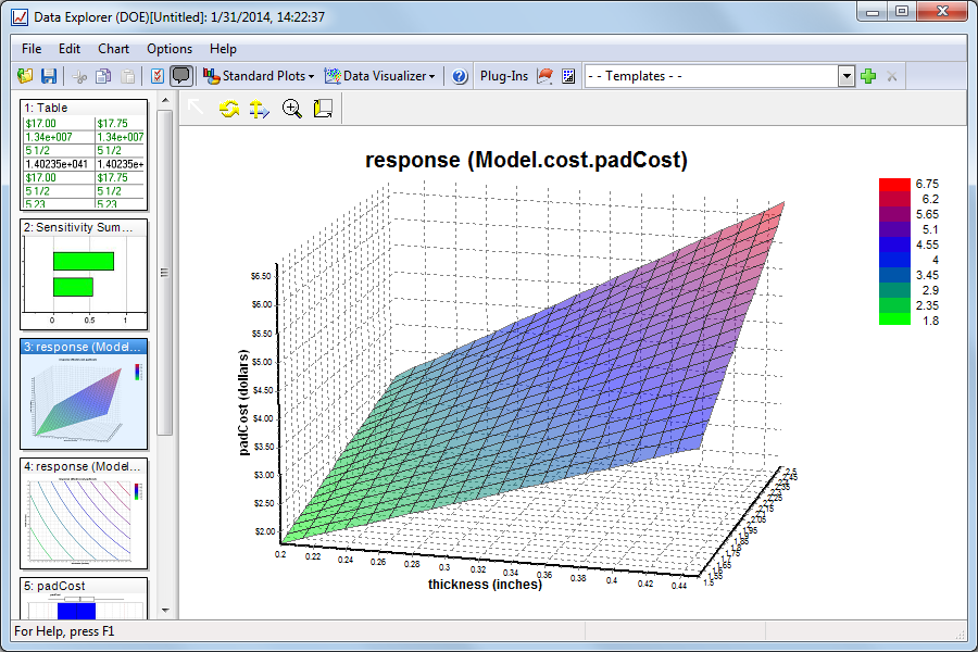 Use the Surface Plot to view the effects of 2 independent variables on another variable in a 3D view.