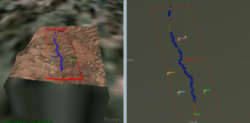 Engineers and operators want study the impact of terrain on a communications link to a ground vehicle traveling on a road through an exercise area located in mountainous terrain. There are four proposed locations for communication nodes that could be used as relays to a satellite and finally to a receiving station. You want to assess the impact of the communication node antenna height on the ability to communicate with the ground vehicle along the entirety of the road's path.