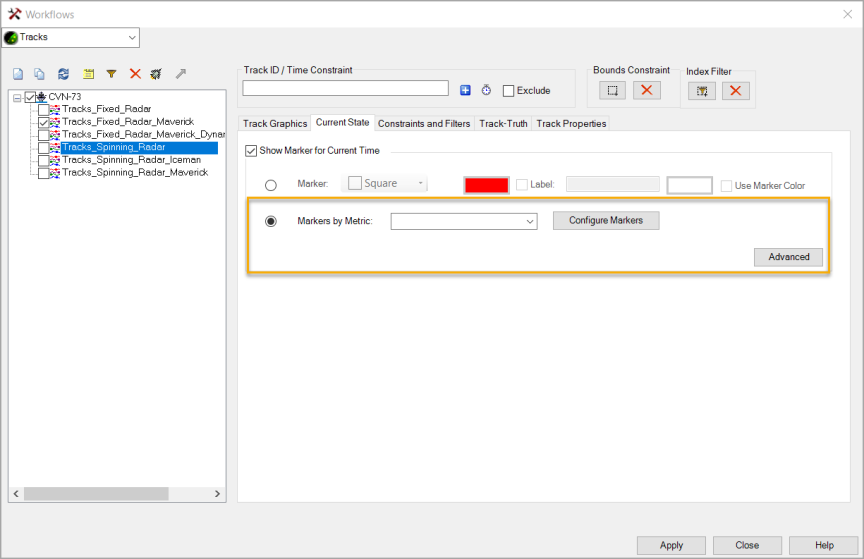 The Markers by Metric configuration area enables you to select a saved configuration for display of the current point marker