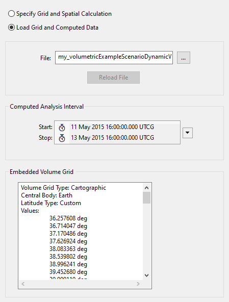10. The Computed Analysis interval has automatically been set to use the interval defined in the file. Note the number of defined altitude values and number of grid points that make up the grid in the read-only Volume Grid field.