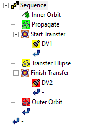 Object Properties | Allow you to get/set values from Astrogator segments. In this example, you will use this to set the desired orbits and the initial guesses for the maneuver magnitudes. |