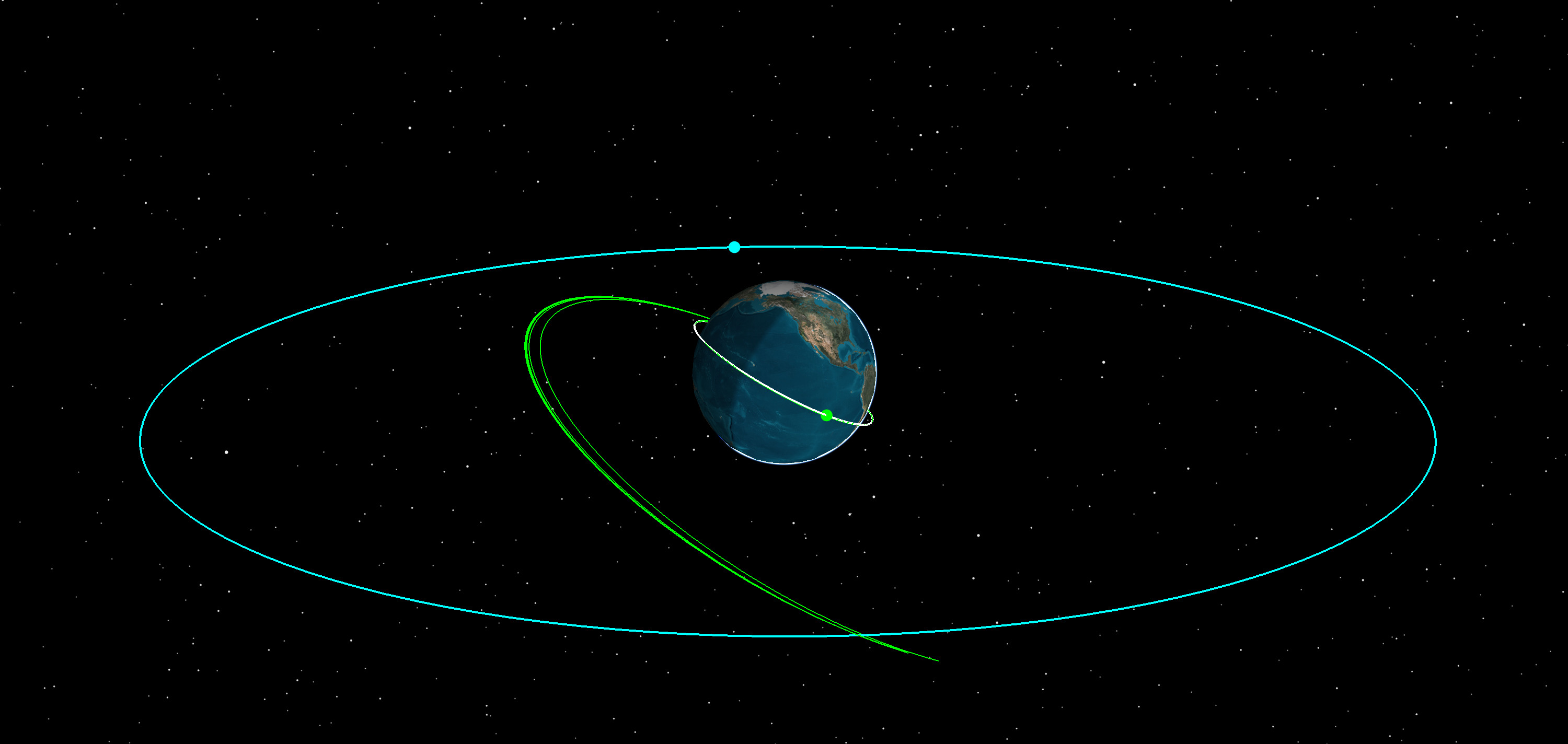 - Examine the results in the 3D Graphics window. The transfer arc still does not end in the GEO orbit.