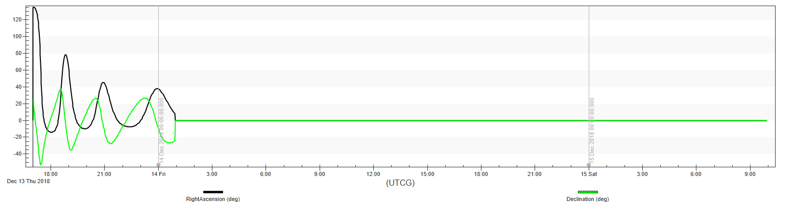 You can see how the direction of thrust changes over the course of the mission until its last segment. In the last segment, the final orbit is propagated.