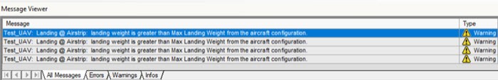 From the Message Viewer, you learned that the UAV has exceeded its max landing weight. While one option could be to put in some additional flight time to burn off the excess fuel, a better way is to calculate the amount of fuel needed and to adjust the initial amount of fuel accordingly.