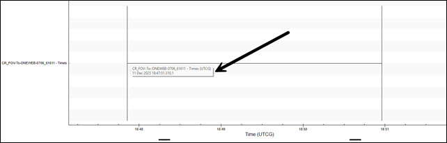 Your view will differ from the above image. The stored view now shows the moment your selected OneWeb satellite enters CR_FOV's field of view and important data pertaining to the satellite is displayed in the 3D Graphics window.