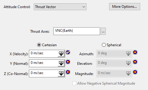 Set the Maneuver segment's attitude control mode to thrust vector.