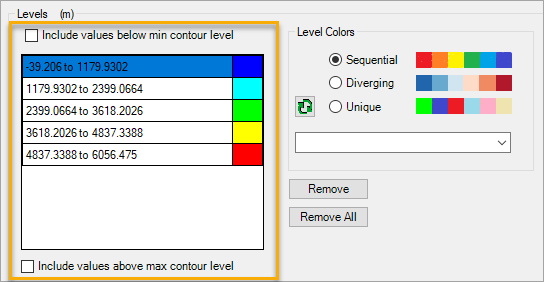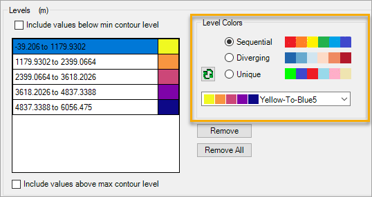 The Level Colors section enables you to choose from a set of preset colors for the contour levels: