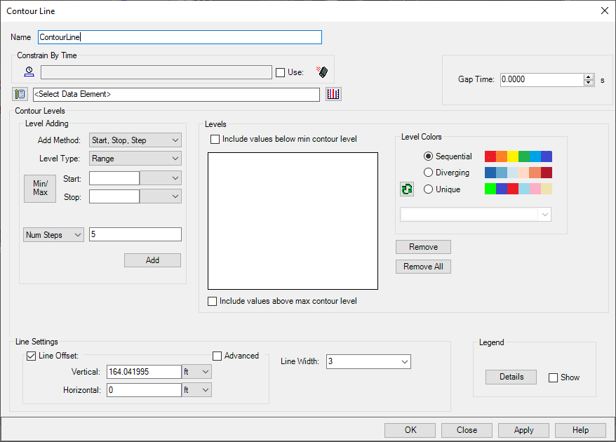 Use this list of the time intervals to select elements for which to display contour lines by clicking the Add (
