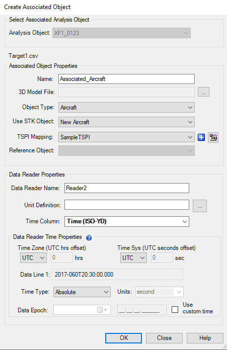 | Reference Object | When importing Ownship or Associated State data, if the data is in XYZ or AzElR, then you must select an STK reference object to which the TSPI will be attached. | |