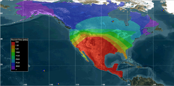 Summarize your analysis in terms of traditional metrics such as response and revisit times and abundant customizable qualitative measures such as average elevation angle or the 90th percentile signal to noise ratio. Communicate the results of these complex analyses with illuminating 2D and 3D visualizations.