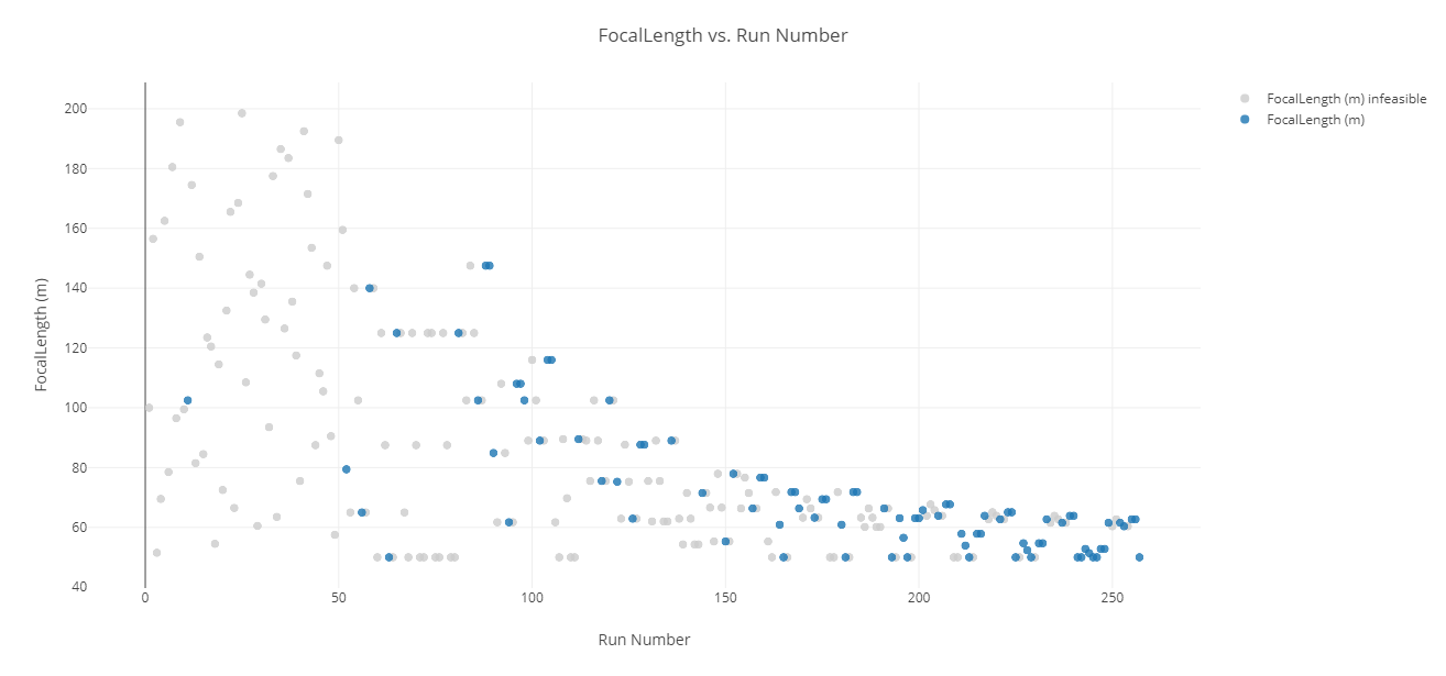 Your results for data values and best design run may be different from the above image. In this case, while the algorithm continued on and converged around a solution, the overall best value was from an earlier run.