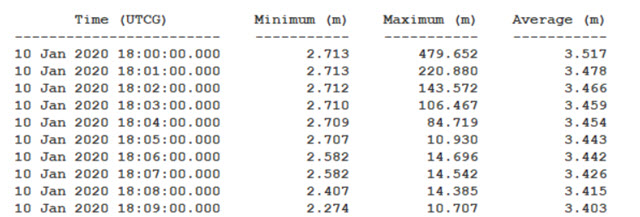 10. You will see the min minimum, max maximum, and average uncertainties in meters.
