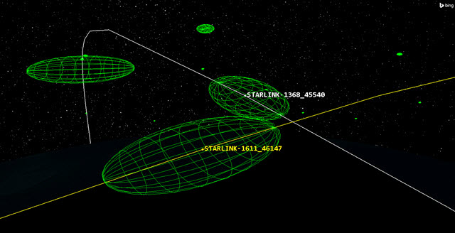 ) Satellite/STARLINK-1611_46147 to the Chosen: list. - Use a typical Hard Body Radius of an A-Train satellite. Set the HardBodyRadius value to 3.0 m.