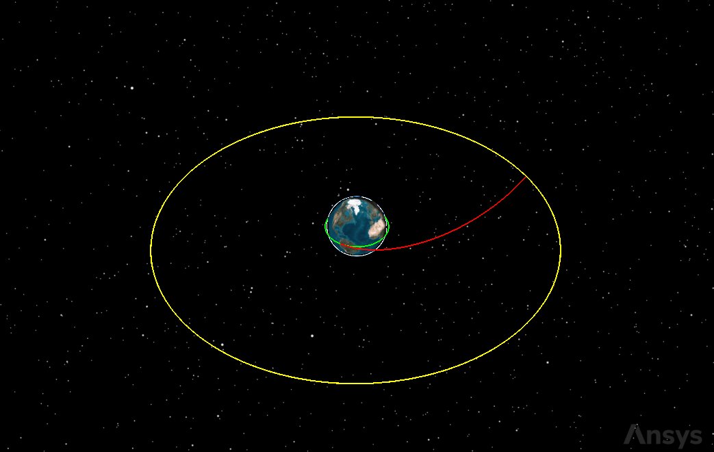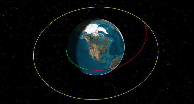 - Use your mouse to obtain a good view of OneTangent as it transfers from a low Earth orbit to the outer orbit.