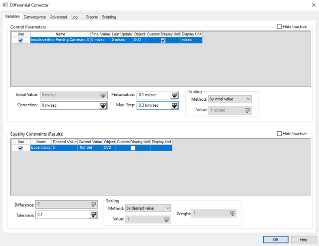 - Set control parameters and equality constraints for differential correctors