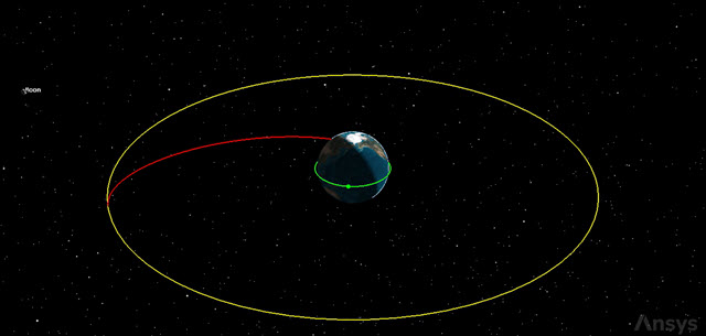 - Use your mouse to obtain a good view of Hohmann_Sat_Targeter as it transfers from a low Earth orbit to the outer orbit.