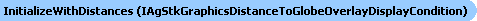 Initializes a distance display condition with the Globe Overlay and the inclusive distance interval [minimumDistance, maximumDistance]. When this display condition is assigned to an object, such as a primitive, the object is only rendered when the distance, in meters, from the camera to the Globe Overlay is within the interval. |