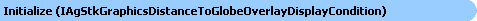 Initializes a default distance to globe overlay display condition. With this constructor, an object is always rendered regardless of the camera's distance to the Globe Overlay. |