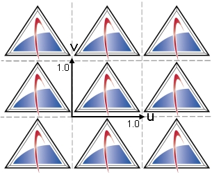 When a surface mesh is rendered, texels in the texture are mapped to pixels on the screen. Texture coordinates are used to lookup texels. A texture lies on a plane, and its coordinates are in the range [0, 1] in both the u and v directions as shown below.