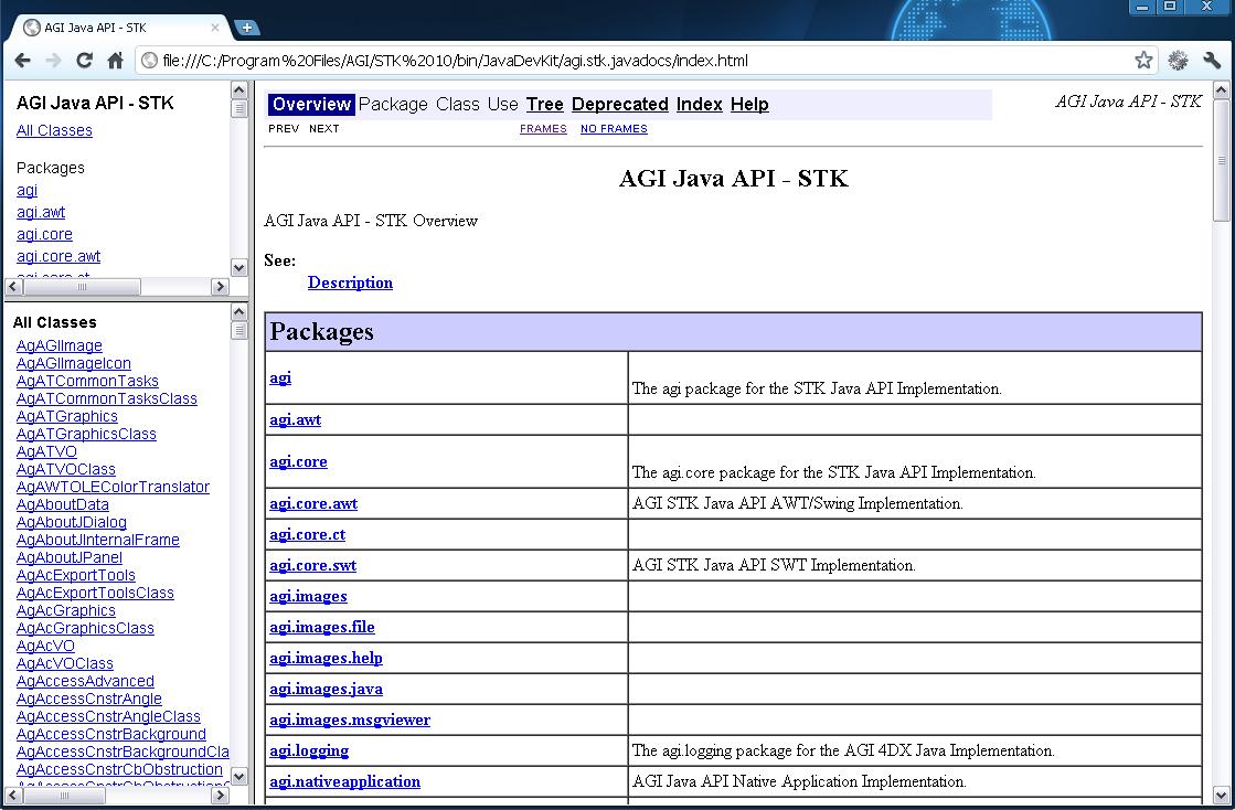 The STK Java API Javadoc documentation will be displayed in your default HTML browser.