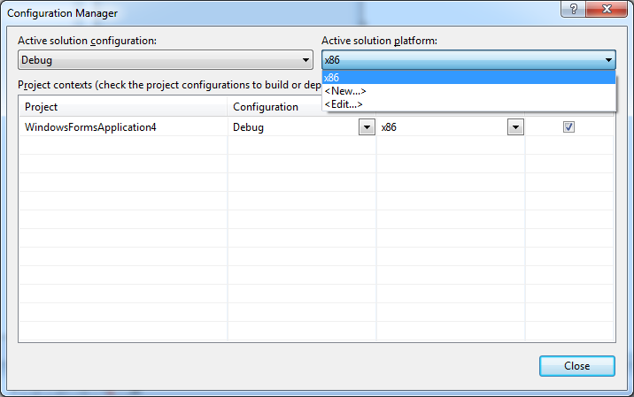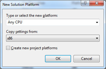 To use the 64-bit version of STK Engine in your Visual Studio C# or VB.NET project, select the configuration to Any CPU, and then rebuild your application. If the Any CPU configuration is not already available in your solution: