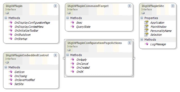 The figure below outlines the methods an properties associated with the most significant UI plugin interfaces: