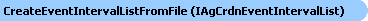 CreateEventIntervalListFromFile | This method is deprecated. Use CreateEventIntervalListFile instead. Create an interval list loaded from specified interval file. |