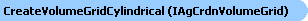 CreateVolumeGridCylindrical | Creates and registers a cylindrical volume grid type using specified name and description. |