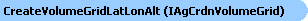 CreateVolumeGridLatLonAlt | Creates and registers cartographic volume grid type using specified name and description. |