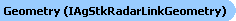 Provides the radar link geometry interface IAgStkRadarLinkGeometry through the Geometry property, as well as helper functions for computing doppler/range resolution, iso doppler, and iso range values for a known signal.