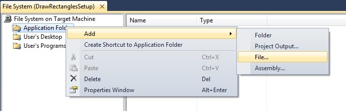 - Right-click on the empty pane on the right side of the window, and select Add, and then File... from the context menu: