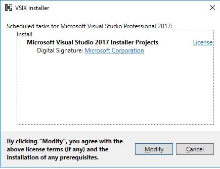 - In the search field of the dialog box, type Microsoft Visual Studio 2017 Installer Projects.
