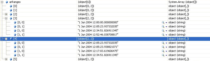 Array arTimeSpans = arRanges.GetValue(iRange) as Array;