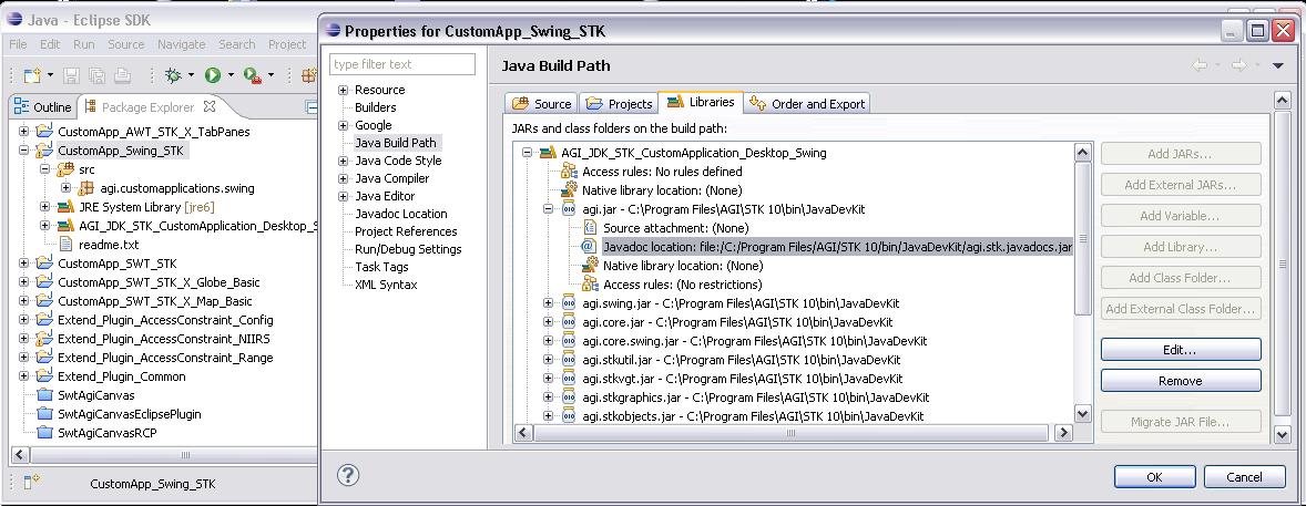 - Repeat the preceding steps 2 through 10 once for each remaining STK Java API jar files in the Libraries tab.