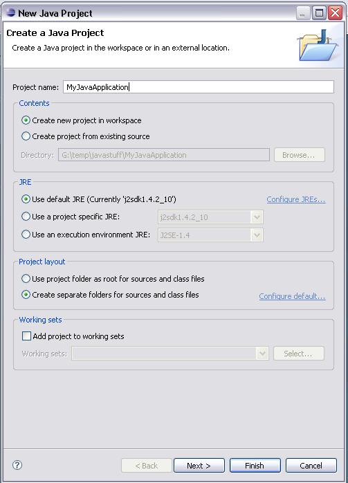 - Type any name you like for your Java project.