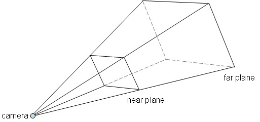 View frustum - A truncated pyramid that determines what is in view. See the Camera's View Frustum Overview or Wikipedia.