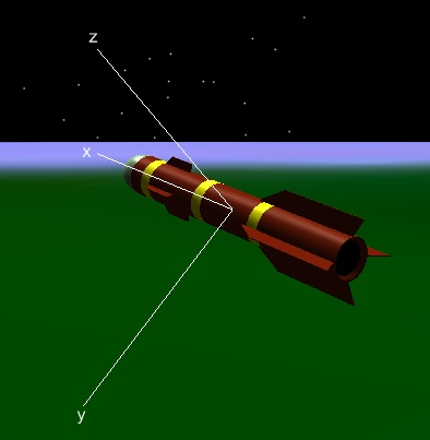 The orientation of the model depends on the model itself. For example, in the hellfire.dae model, the missile is laid out lengthwise along the positive x axis. To change the orientation, use the Orientation property and provide an IAgOrientation that defines the rotation from the model's local axes to the axes of the reference frame in which the model's position is defined. In this case, the model's position is defined in the central body's fixed frame. A convenient way to compute the orientation is shown below: