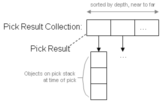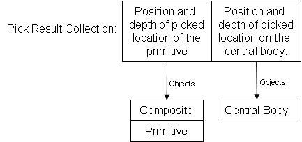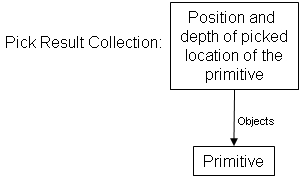 Pick returns a collection of pick results, PickResults. Each pick result, PickResult, represents one occurrence of a pick. This includes the object(s) involved in the pick and their position. This is shown in the image below.
