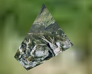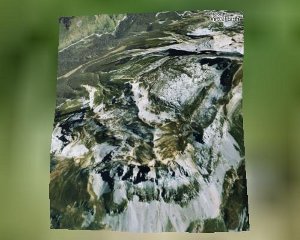 A more interesting example allows you to map the four corners of a texture to new corners. A common example involves mapping an image taken from a UAV's camera onto the Earth where the cartographic coordinate of each corner of the image is known. If such an image were added as a texture to a surface mesh that was a rectangle initialized from the image's latitude and longitude bounding extent, the following results: