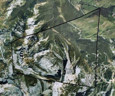 Despite this issue, this method is often the best that can be done if you only have the cartographic coordinates of the corners. If you has the position, attitude, and the field of view of the camera, the image can be more properly georegistered. See the Raster and Projection Streams Overview for more information.