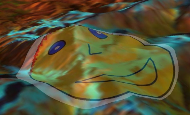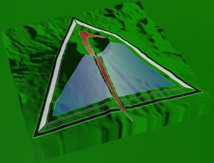 The extent triangulator is used to compute a mesh on the surface. As shown in the previous two examples, both the extent and polygon triangulator can be input to the surface mesh. The extruded polyline triangulator cannot be input since it does not provide meshes on the surface. A texture is created, in the same way it is created for markers, and passed along with the triangulator to define the surface mesh. The texture in this example has an alpha channel, which is why the entire extent is not filled.