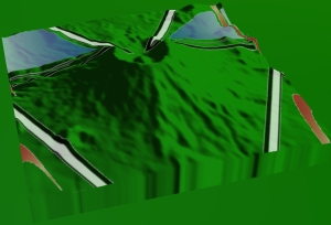 In addition to conforming to terrain, the surface mesh can have a texture applied to it as shown below.