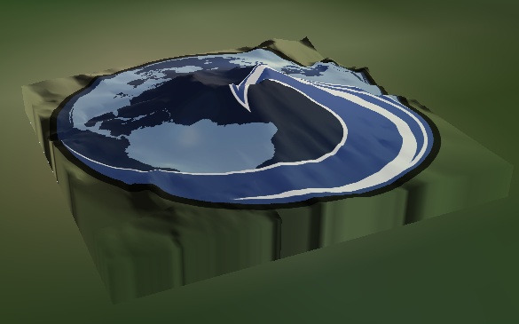 When applied to a surface mesh, texture edges align to latitudinal and longitudinal lines where the top edge is north. The texture extends to the bounding extent of the surface mesh. The texture can be scaled, translated, and rotated by assigning a TextureMatrix to the surface mesh. Performing transformations like these over time can create effects like water movement.