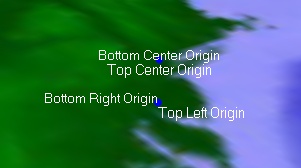 By default, a string's position defines the bottom left corner of the text. Using TextBatchPrimitiveOptionalParameters, the position can define the horizontal origin as left, center, or right, and the vertical origin as bottom, center, or top. Use the Origin property to set the origin for every string in a batch, or use SetOrigins to define origins per-string. The following code creates a text batch with several strings to demonstrate the affects of different origins.