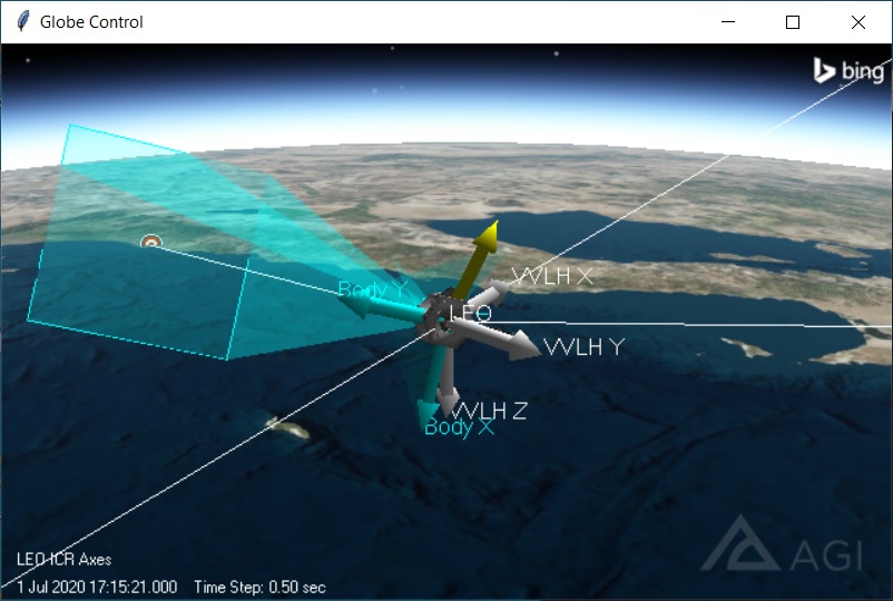 The Globe control enables you to insert a 3D view into your application. This control matches the 3D window from the STK Desktop application.